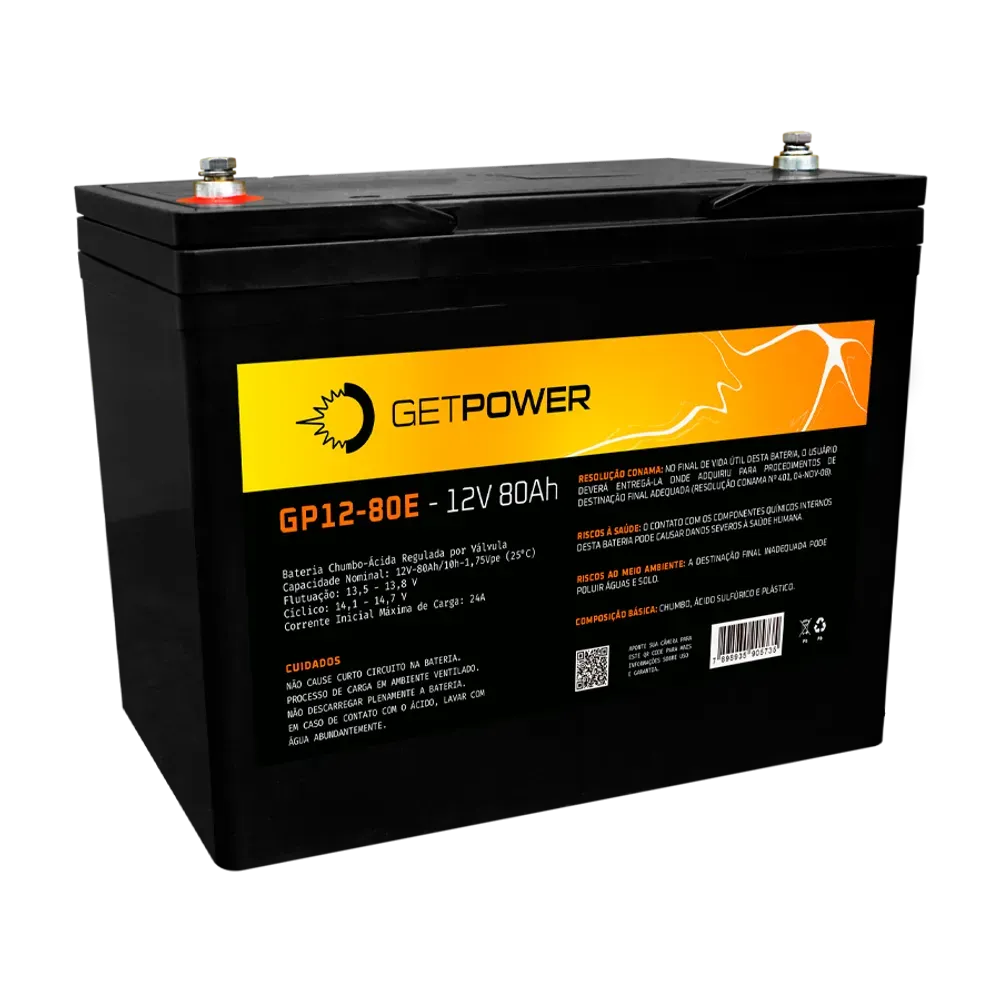 A Bateria Selada VRLA Getpower GP12-80E oferece energia confiável para sistemas estacionários. Sua tecnologia VRLA garante operação livre de manutenção e alta segurança, ideal para uso contínuo.