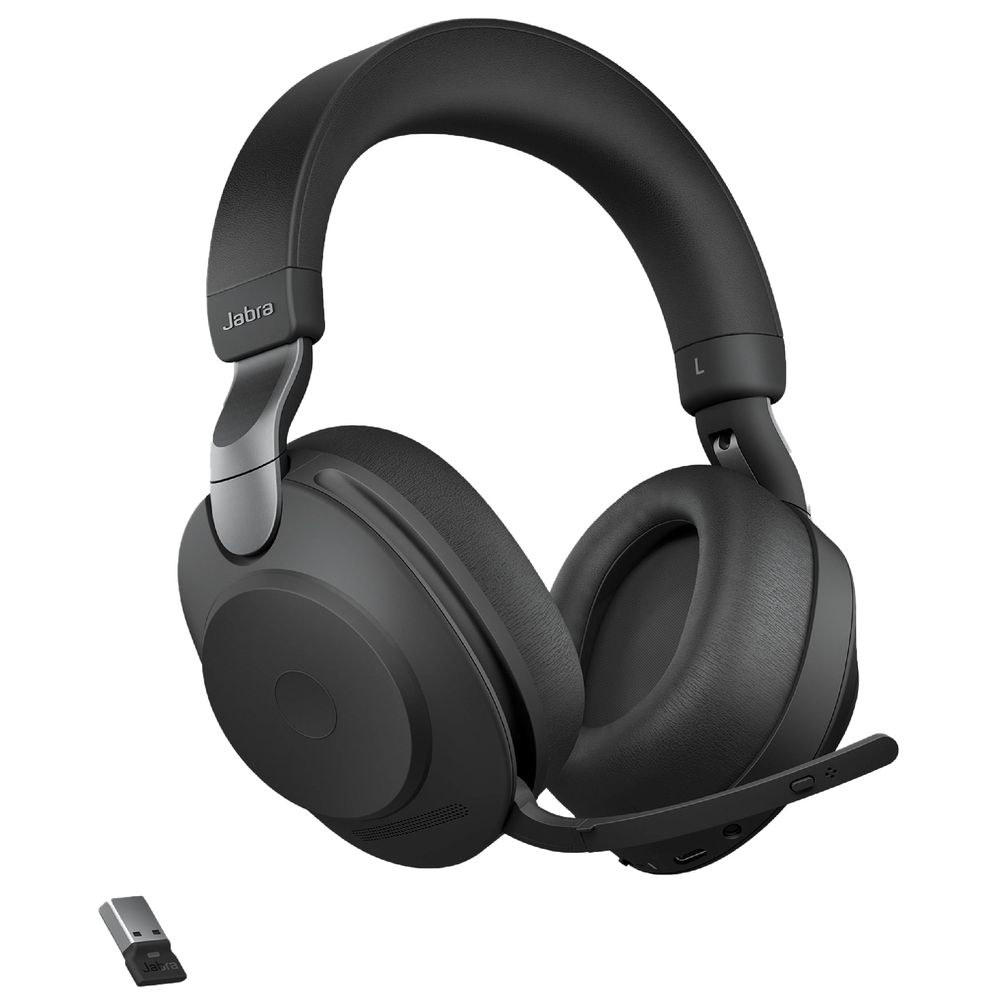 | Mais Detalhes | Headset Jabra Evolve2 85 UC Preto, com certificação UC, cancelamento de ruído ativo (ANC), microfone com cancelamento de ruído, alcance de conexão sem fio de 30m, bateria com 30 horas de conversação, suporte de carregamento incluído, Bluetooth 5.0, drivers de áudio de 40mm, indicador Busylight, peso de 286g, cor preta, função mudo por movimento do boom arm e detecção de uso no ouvido (On Ear Detection). |