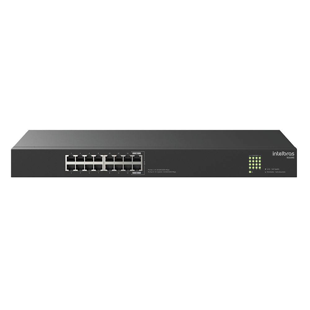 Expanda sua rede com o Switch Intelbras S1116G, um dispositivo não gerenciável de 16 portas Gigabit Ethernet que garante alta velocidade e fácil instalação para conexões eficientes.